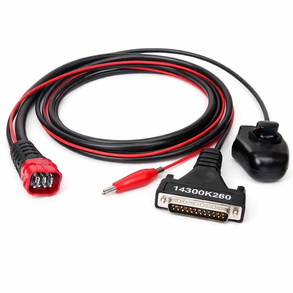 The 144300K280 cable is a dedicated cable for KTM / Husqvarna motorcycles with a 6-pin Euro5 connector, designed to work with KESS3.