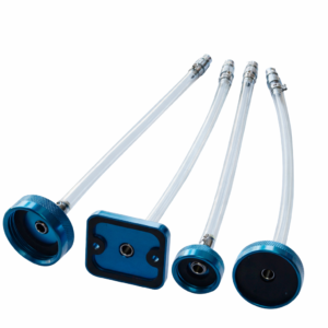 Brake fluid is supplied to the reservoir at controlled pressure when the caliper bleed valve is opened. Thanks to this, there is no need to manually add the liquid to the reservoir – the fluid flows automatically from the pressure container, in which the appropriate pressure is generated by a built-in pump.