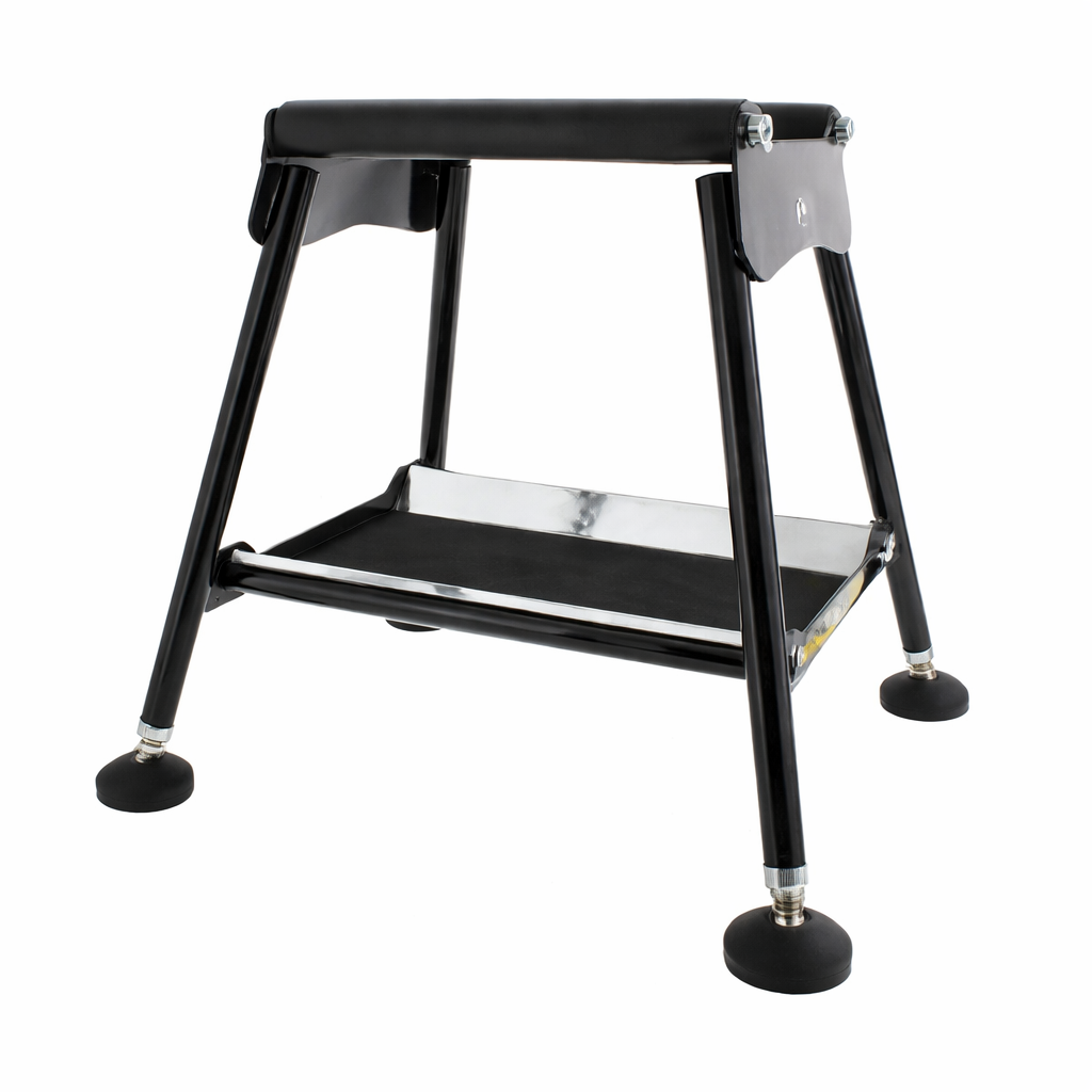 Heavy-duty height-adjustable motocross stool designed to handle motorcycles from 50 to 650 cc. It provides stable and secure support for the motorcycle during maintenance work, and thanks to its open design, it allows full access to the drain plug, making it an ideal solution for oil changes.