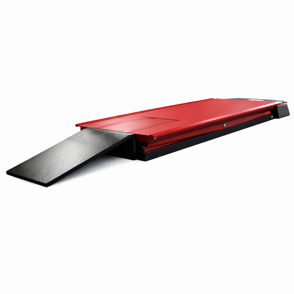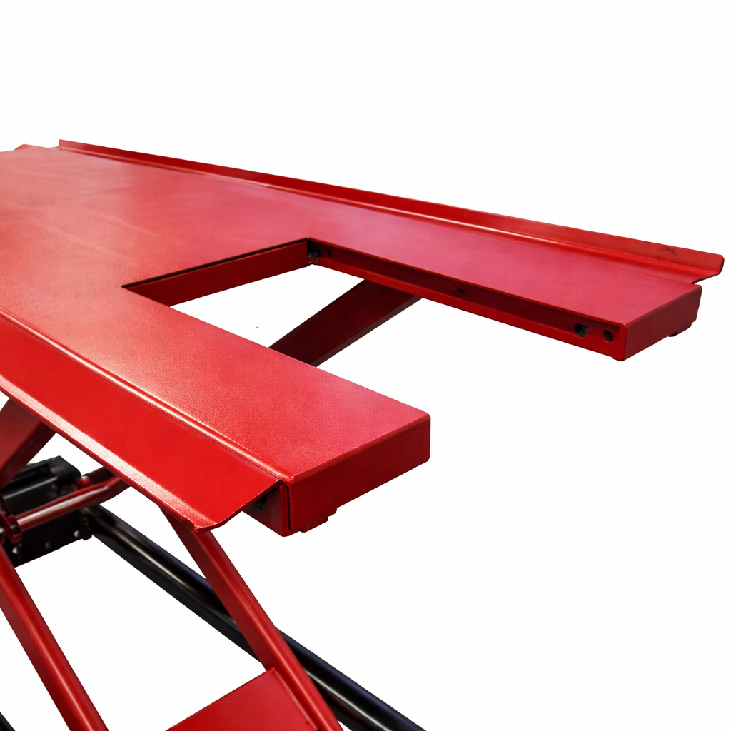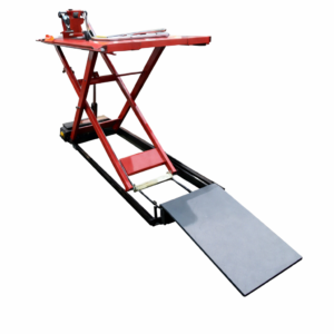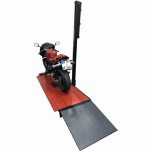 Professional hydraulic jack JMP 500 with electro-hydraulic pump, designed for motorcycle workshops. Its robust, stable construction and load capacity of up to 500 kg make it the ideal solution for everyday motorcycle maintenance – from service to assembly work.