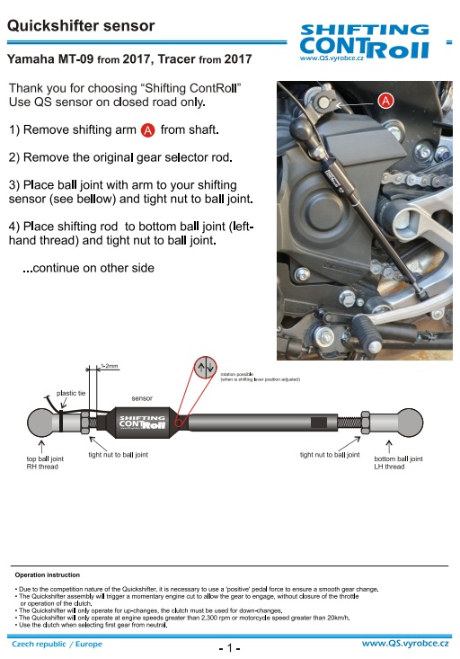 Quickshifter Yamaha MT-09 / Tracer 2017-