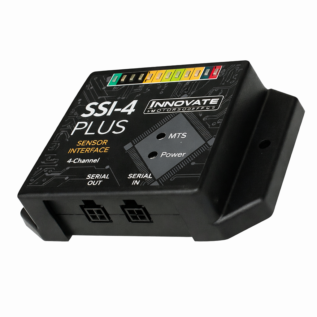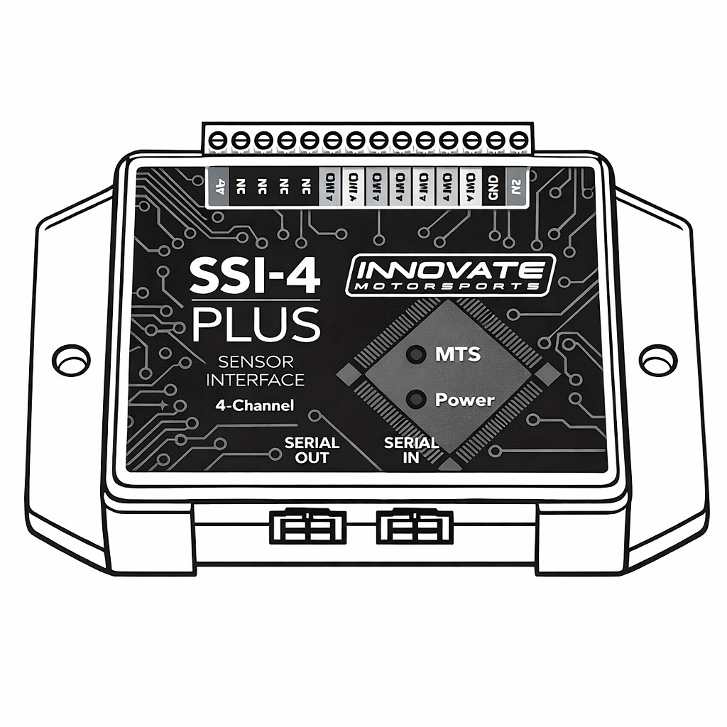 The Innovate SSI-4 PLUS is an advanced interface for recording signals from 4 external sensors, designed as part of the Modular Tuning System (MTS). It allows data to be collected from both frequency sensors (RPM, VSS) and analog sensors from 0-5V (MAP, pressure, throttle position, etc.). It can work on its own or as part of the MTS login chain with other Innovate devices.