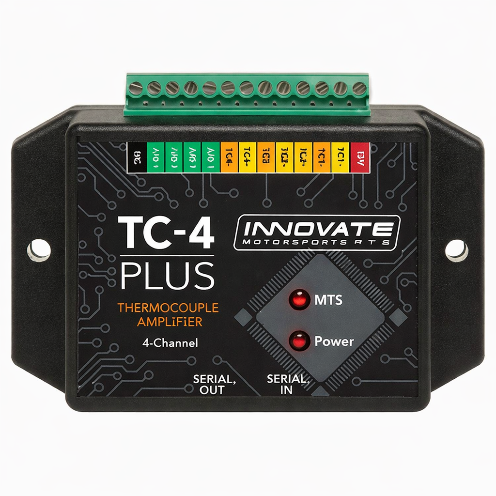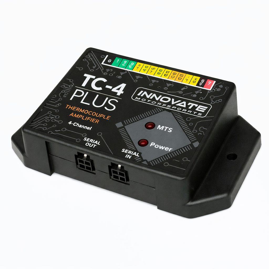 The TC-4 PLUS is a professional 4-channel K-type thermocouple controller designed for precise temperature measurement in tuning, racing, and research applications. The device can work stand-alone or as part of the Modular Tuning System (MTS), creating an extensive data login chain with other Innovate devices.