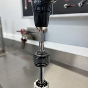 Specjalistyczny frez serwisowy przeznaczony do obróbki (frezowania) tłoczysk amortyzatorów marki KYB (Kayaba). Narzędzie umożliwia usunięcie fabrycznego zabezpieczenia śruby / zablokowania gwintu, dzięki czemu możliwe jest bezpieczne odkręcenie nakrętek tłoczyska podczas pełnego serwisu amortyzatora.
