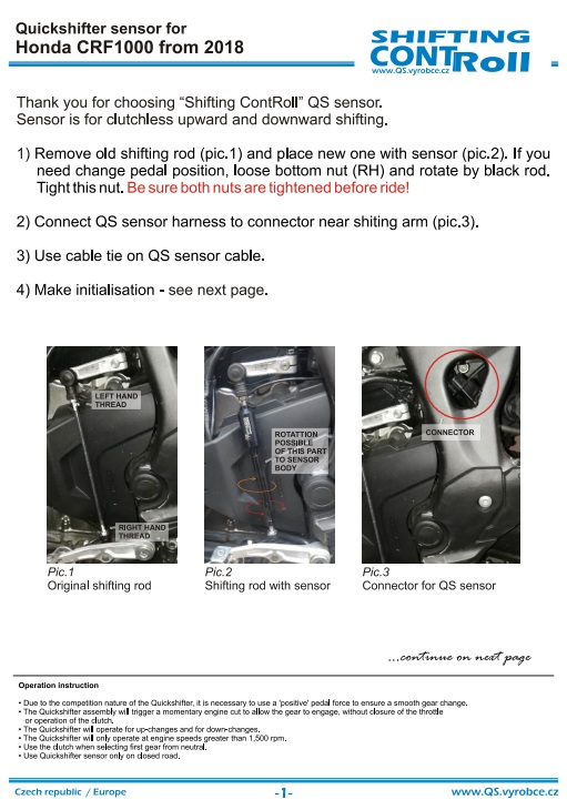 Dwukierunkowy czujnik umożliwiający bezsprzęgłową zmianę biegów w górę (Quickshifter) oraz automatyczną redukcję biegów (AutoBlipper) w motocyklach Honda Africa Twin od rocznika 2018.