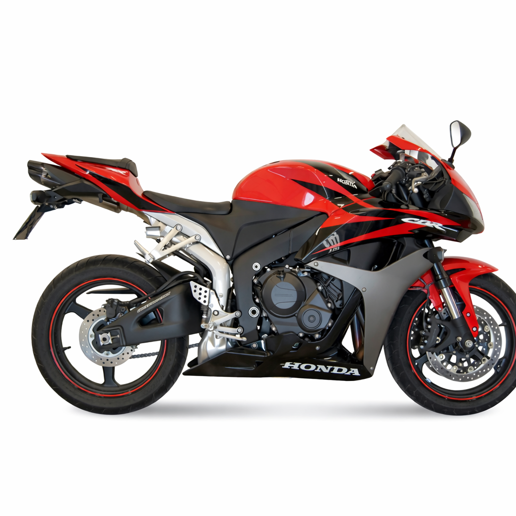 Sportowy wygląd, rasowe brzmienie i wysoka jakość wykonania w wersji dopuszczonej do ruchu drogowego. Seria SUONO od MIVV łączy nowoczesne wzornictwo z technologią inspirowaną sportem, idealnie pasując do charakteru CBR 600 RR z wydechem poprowadzonym pod siedzeniem.