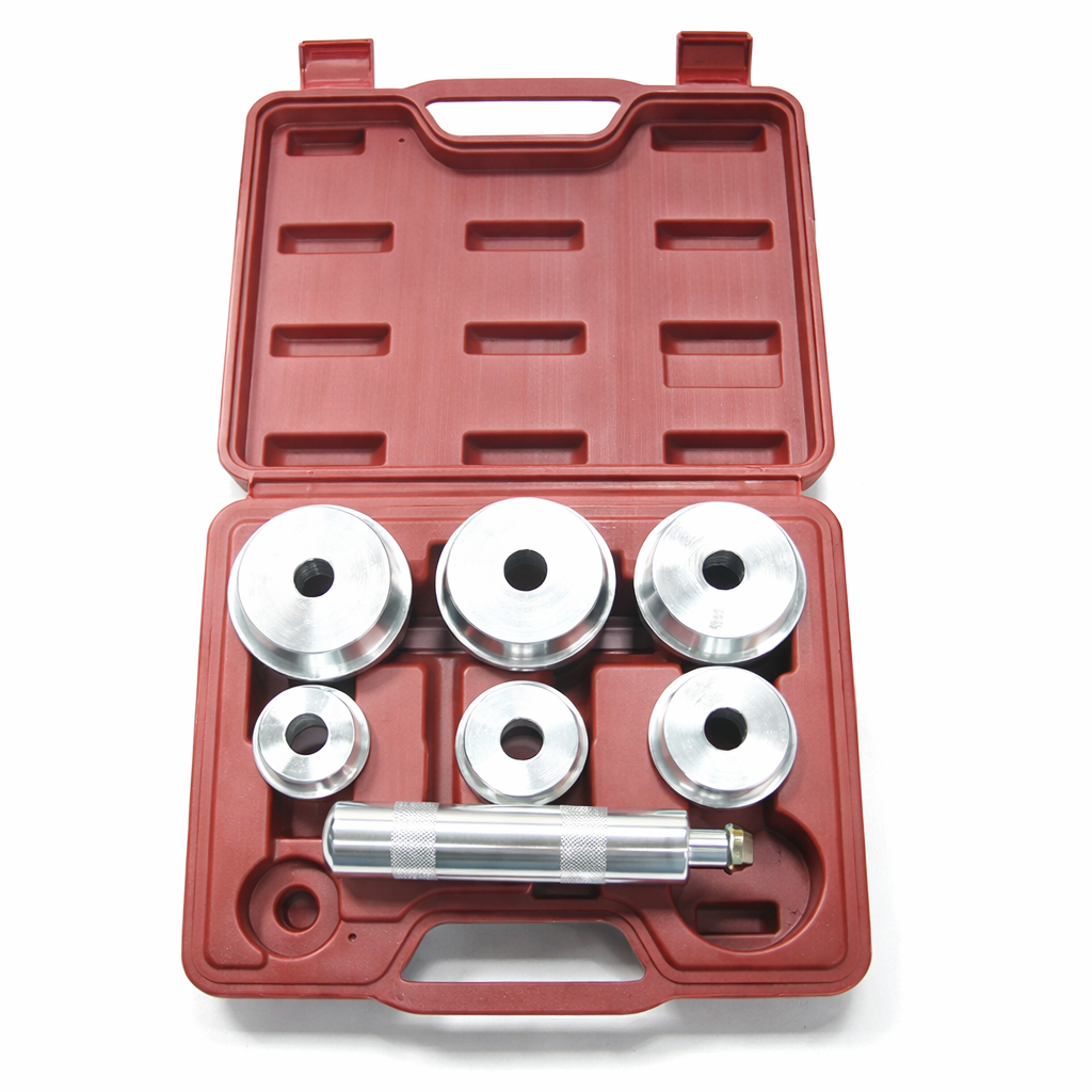 Profesjonalny zestaw przyrządów montażowych simmeringów i łożysk przeznaczony do precyzyjnych prac serwisowych. Komplet zawiera 6 narzędzi o różnych średnicach, co pozwala na dopasowanie do wielu elementów zawieszenia.