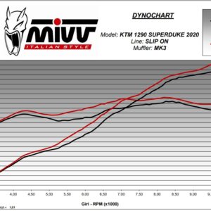 MIVV MK3 Carbon to kompaktowy, wyścigowy tłumik inspirowany bezpośrednio technologią Moto3. Zaprojektowany z myślą o maksymalnych osiągach i redukcji masy, nadaje KTM 1290 Super Duke R jeszcze bardziej agresywny, torowy charakter. Produkt nie posiada homologacji drogowej i jest przeznaczony do użytku sportowego.