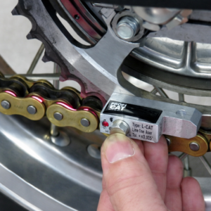 Profesjonalne, laserowe urządzenie marki L-CAT ułatwiające precyzyjne ustawienie osiowości tylnego koła w motocyklu. Niezastąpione podczas wymiany lub regulacji (naciągania) łańcucha napędowego.