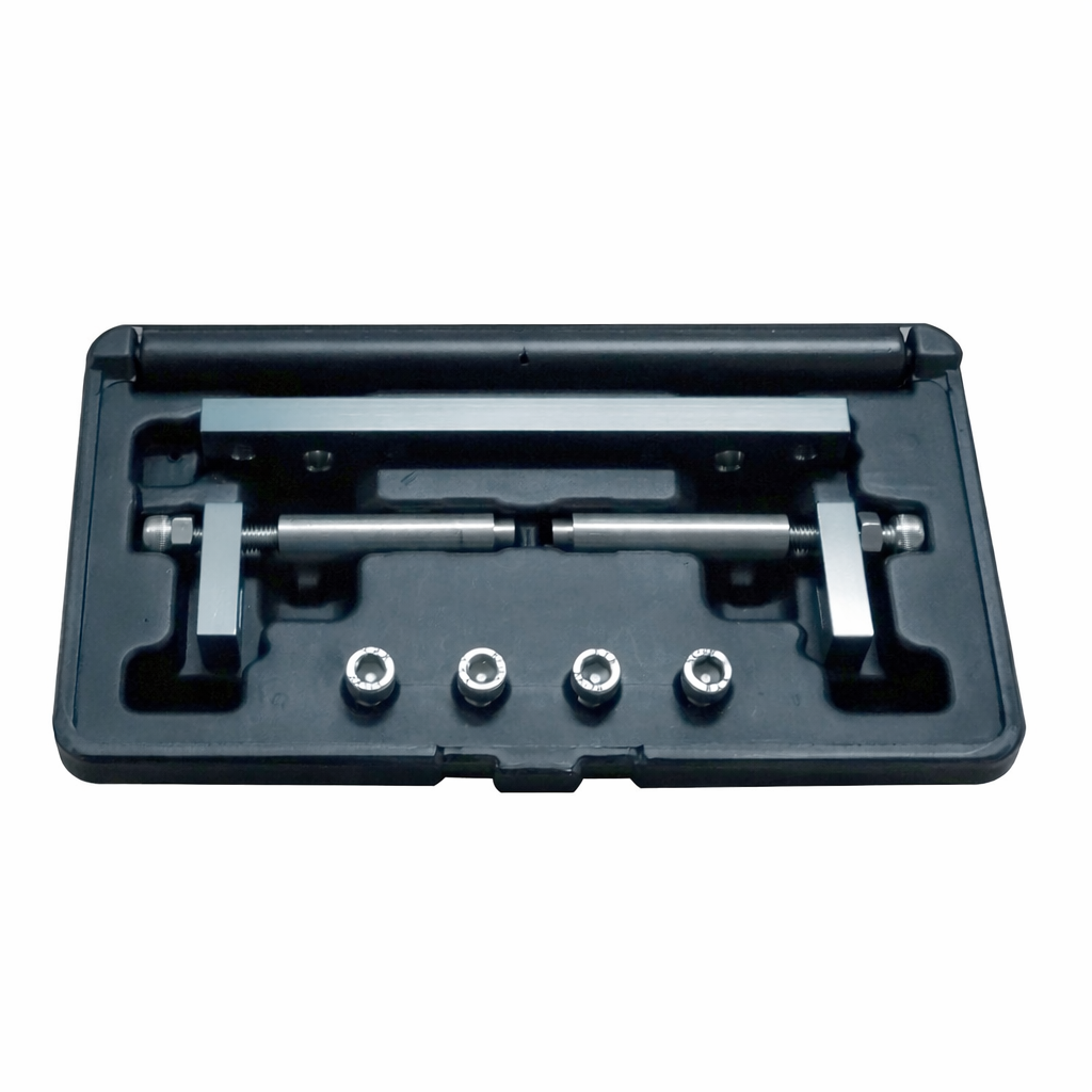 Specjalistyczny zestaw narzędzi do montażu płytek zaworowych, przeznaczony do motocykli marki Triumph wyposażonych w silniki 3- i 4-cylindrowe z lat 1992–2005. Narzędzie umożliwia precyzyjną i bezpieczną obsługę płytek zaworowych podczas regulacji luzów, bez ryzyka uszkodzenia elementów rozrządu.