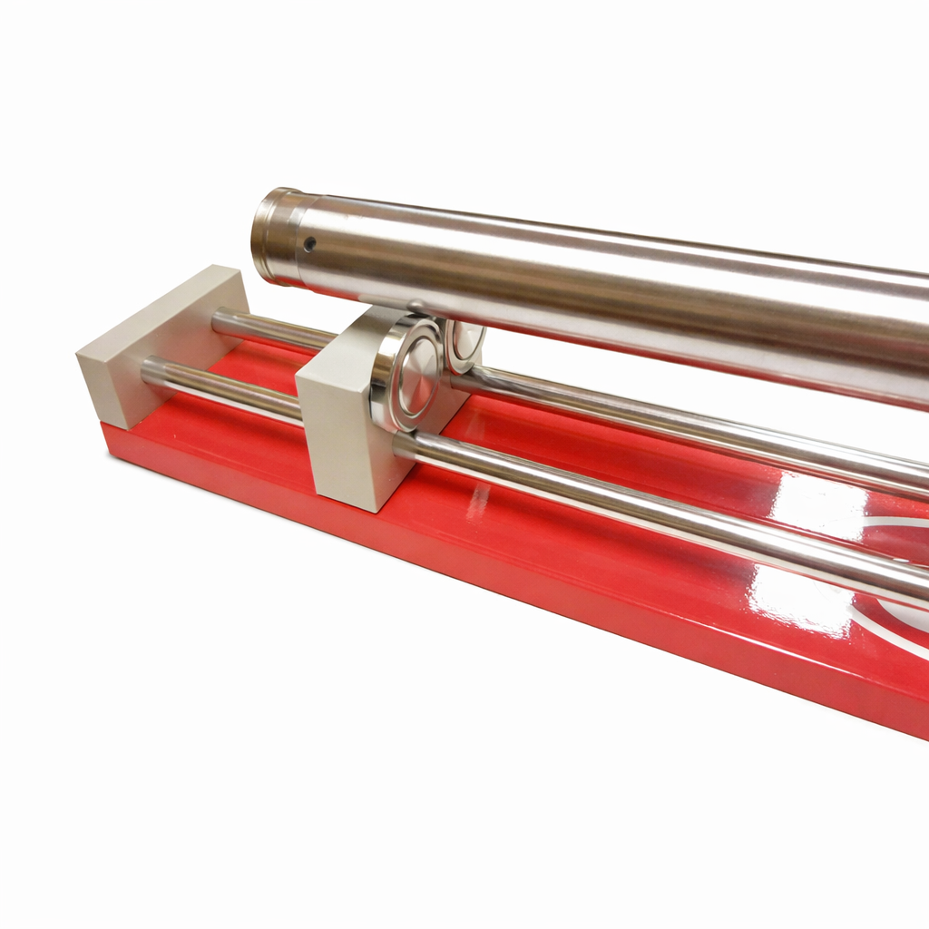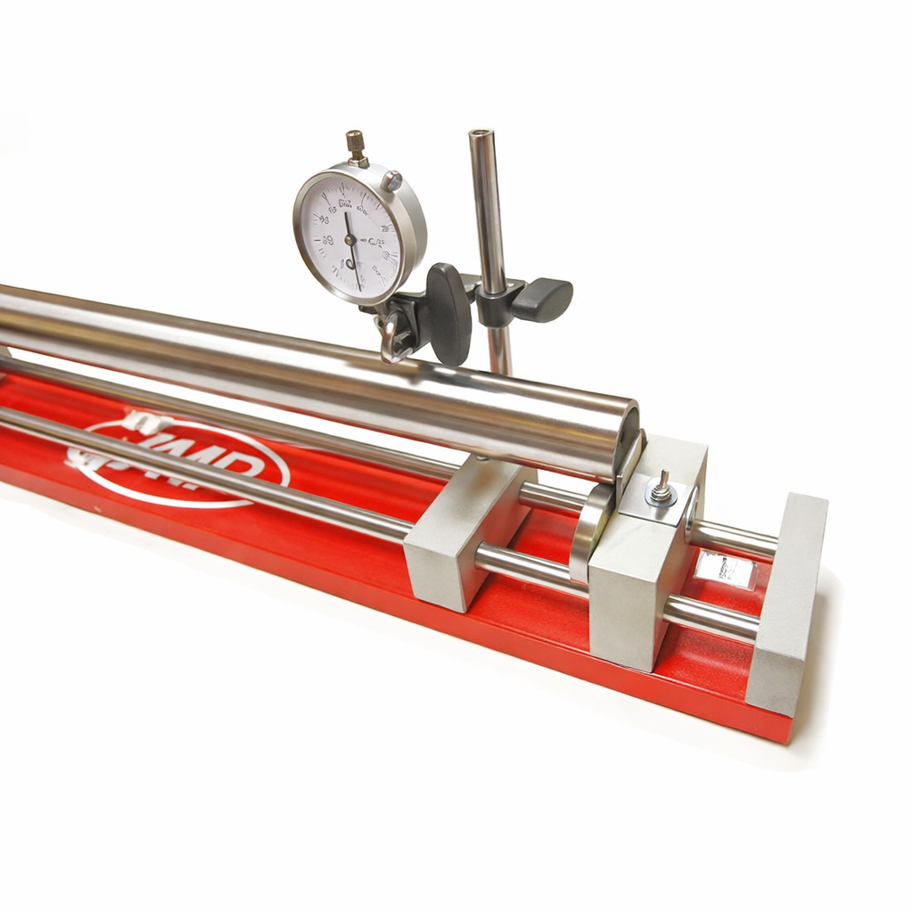 Dzięki czujnikowi zegarowemu przesuwanemu po chromowanych prętach możliwy jest pomiar bicia w dowolnym punkcie na całej długości rury / shaftu. Badaną rurę należy ułożyć na łożyskach podpierających, przyłożyć czujnik do jej powierzchni i obracać rurą, obserwując wskazania. W przypadku prostych rur odchylenie nie powinno przekraczać 0,05 mm.