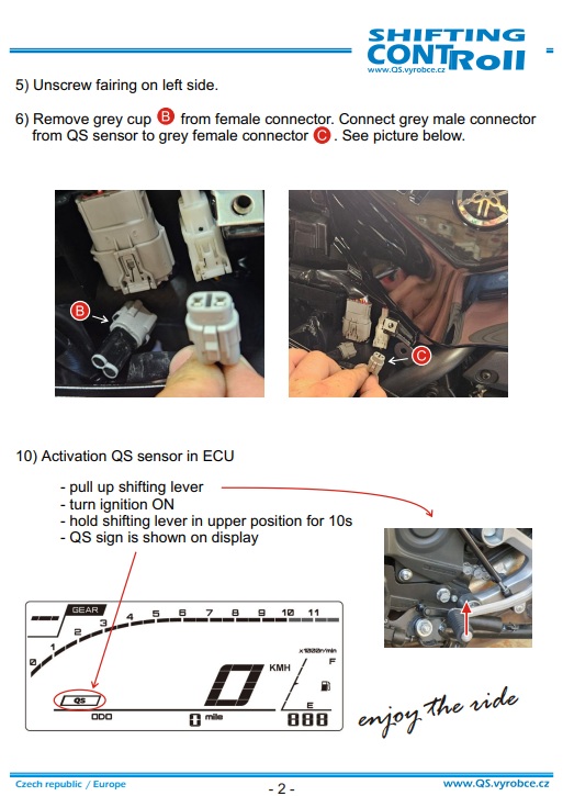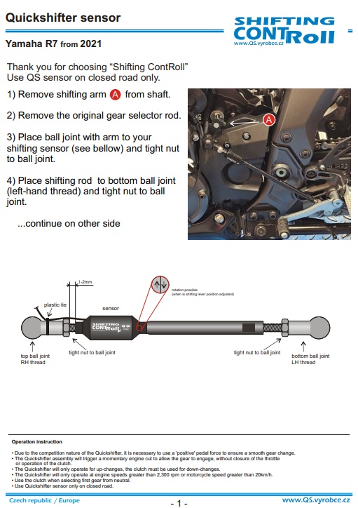 Czujnik Quickshifter przeznaczony do motocykla Yamaha R7 od 2021 roku, umożliwiający zmianę biegów w górę bez użycia sprzęgła (clutchless upshifting). Zapewnia szybką, precyzyjną i płynną zmianę przełożeń, poprawiając dynamikę jazdy oraz komfort podczas sportowej eksploatacji motocykla.