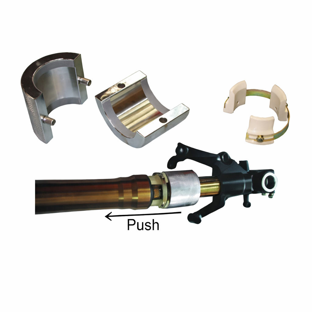 Praktyczne i uniwersalne narzędzie przeznaczone do bezpiecznego oraz precyzyjnego montażu wewnętrznych uszczelniaczy w przednim zawieszeniu motocyklowym. Konstrukcja narzędzia umożliwia równomierne osadzanie uszczelniacza, minimalizując ryzyko jego uszkodzenia oraz zapewniając prawidłowe ułożenie w gnieździe.