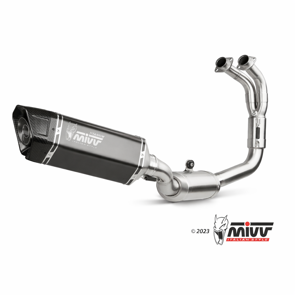 MIVV SR-1 Titanio Nero to kompletny układ wydechowy o wysokim prowadzeniu (posizione alto), zaprojektowany dla Yamaha R7 2022–2024. Linia SR-1 powstała w oparciu o doświadczenie zdobyte w mistrzostwach świata MotoGP, Moto2 i Moto3, oferując połączenie sportowego designu, redukcji masy oraz poprawy osiągów.