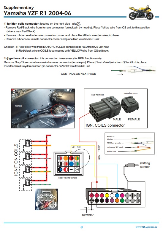 Zestaw QS4: Quickshifter Yamaha R1 2004 – 2006